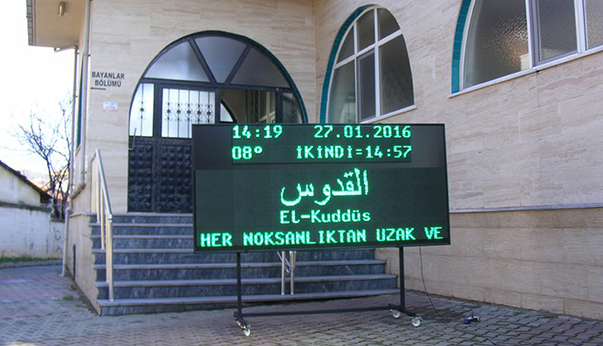 - Ürünle birlikte verilen Tablet PC vasıtasıyla bilgi girişi yapılarak istenilen ayet, hadis ve mesajlar panoya yüklenilebilir.